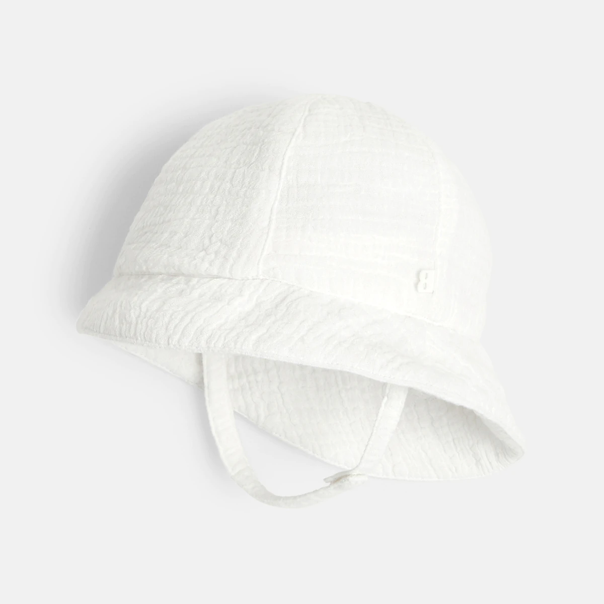 قبعة شمسية مصنوعة من الشاش القطني، باللون الأبيض للصغار