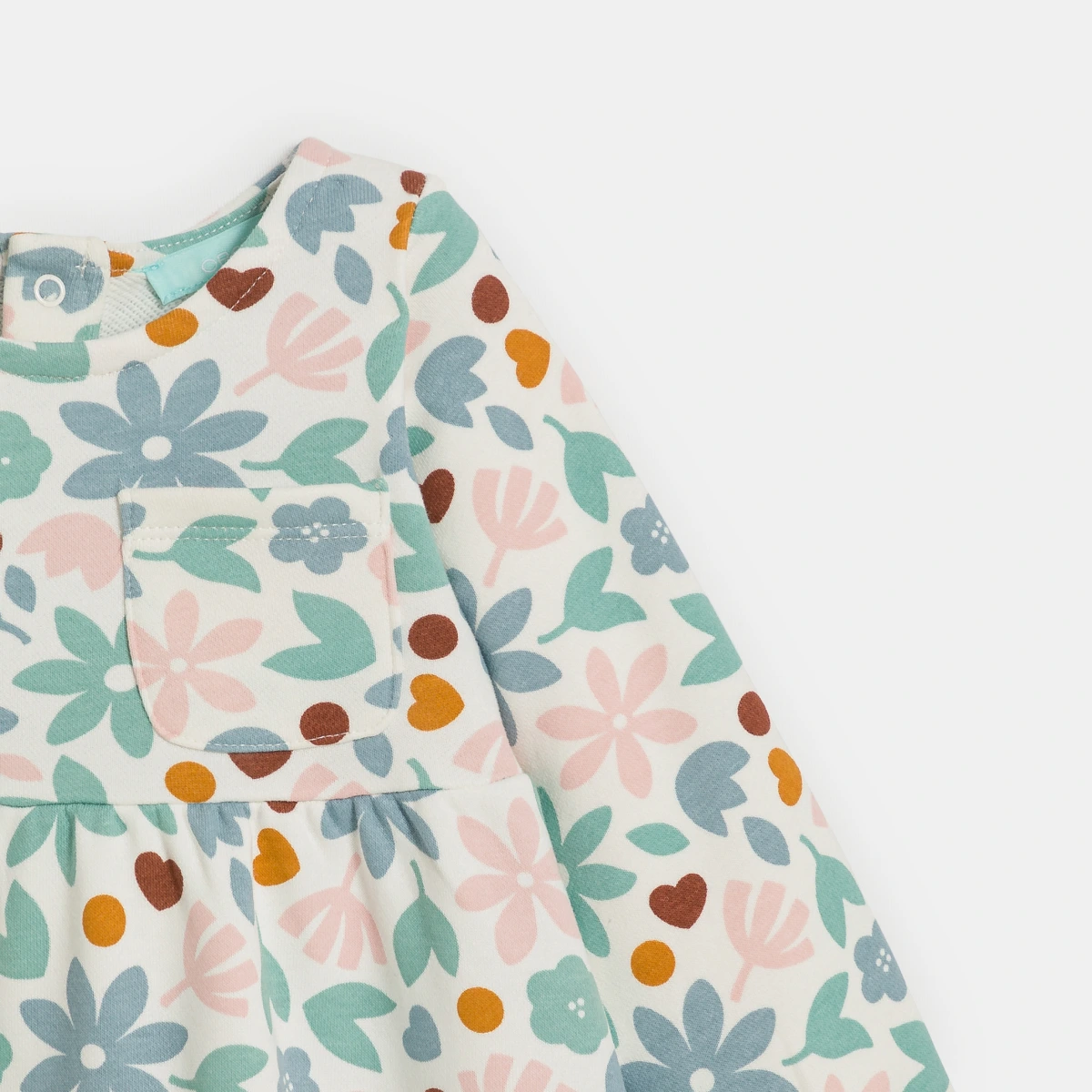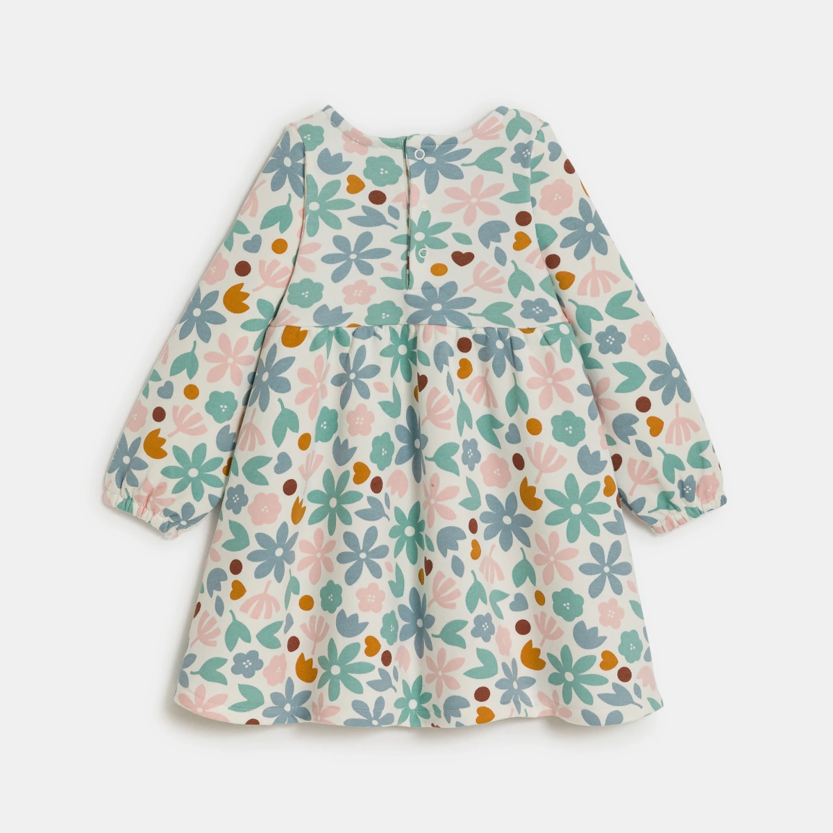 فستان من الصوف الناعم بمظهر نسيج بيكيه، منمق برسوم أزهار للفتيات الرضع