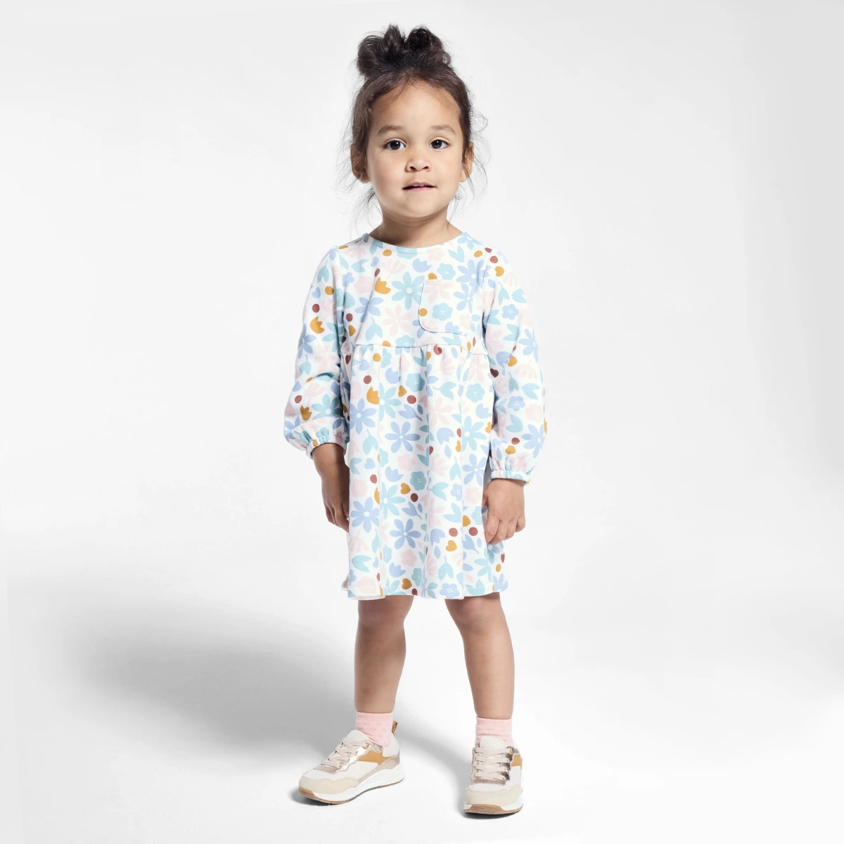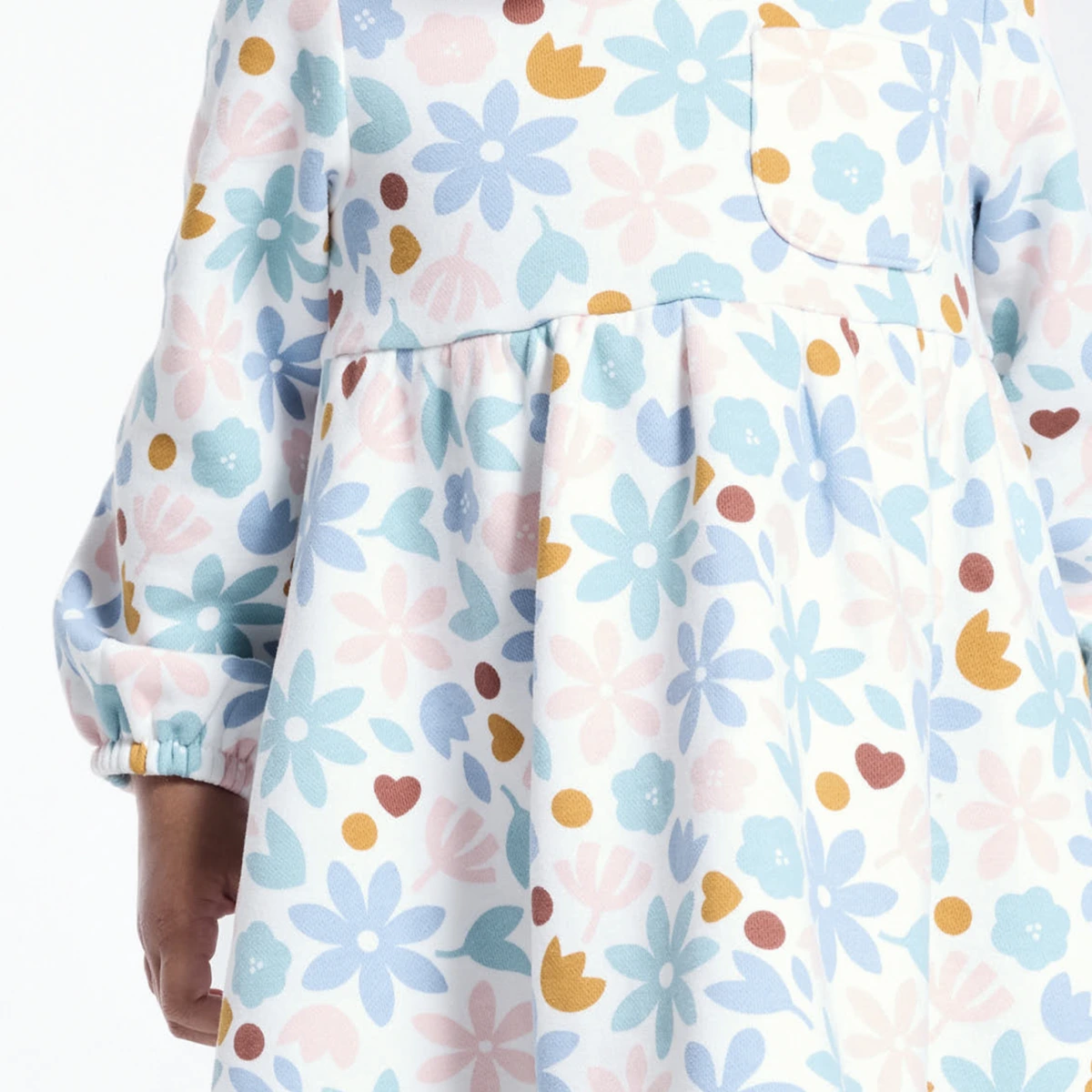 هذا الفستان الصوفي بمظهر نسيج البيكيه فضفاض مما يسمح باللعب والحركة طوال اليوم! دافئ وناعم، إنه الفستان المثالي للاستخدام اليومي! بأكمام طويلة وإغلاق بأزرار كبس.