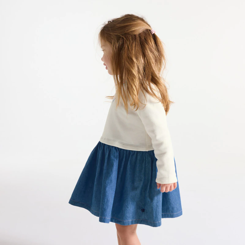 فستان 2 في 1، من الصوف الناعم والدنيم، باللون الأبيض للفتيات الرُضع