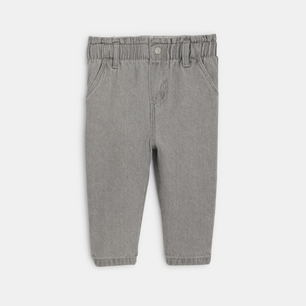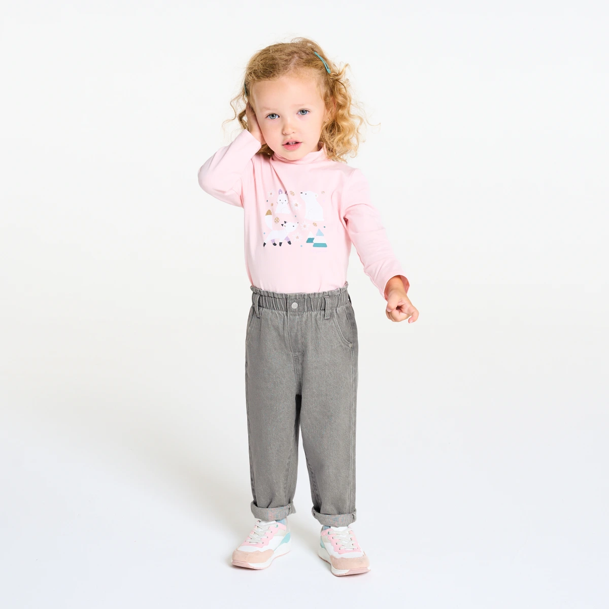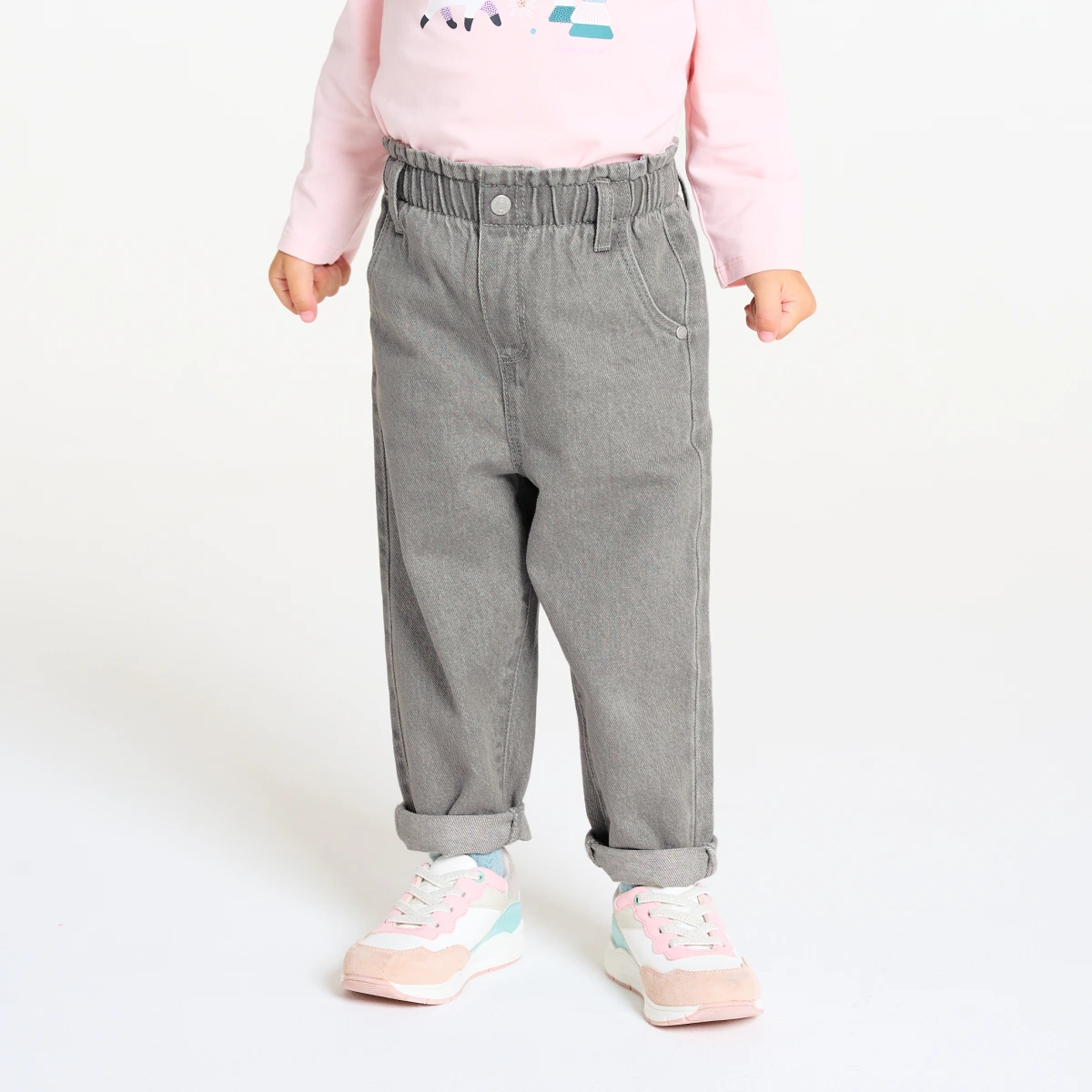 بنطال جينز بخصر عالٍ مصنوع باللون الرمادي لللفتيات الصغيرات