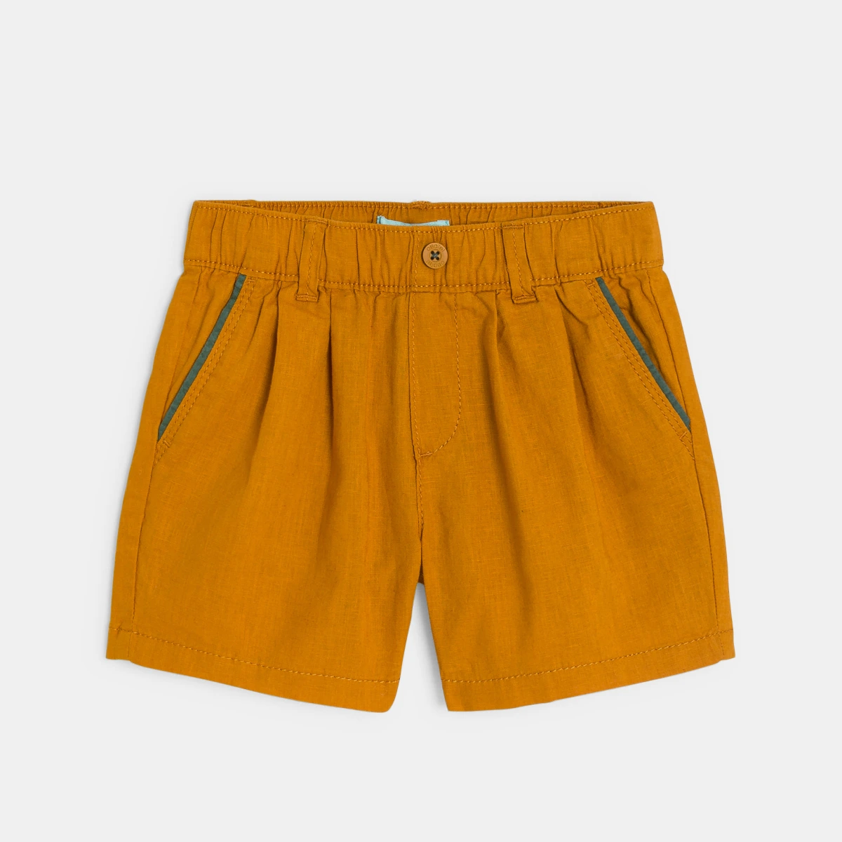 وصفي أناقة الكتان الممزوجة براحة القطن: هذا هو ما يعد به هذا الشورت بقصات الذي سيحبه الأولاد. تصميم بجيوب بتصميم متباين وحزام خصر مطاطي لسهولة الارتداء للصغار.