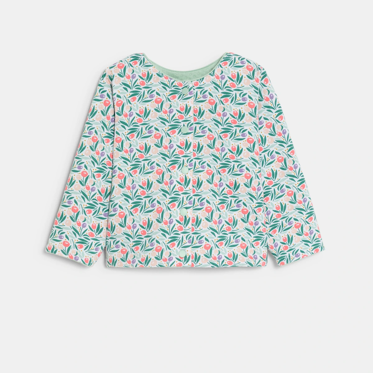 سترة بوجهين وأزرار كبس مع رسوم أزهار، باللون الأزرق للفتيات الصغيرات
