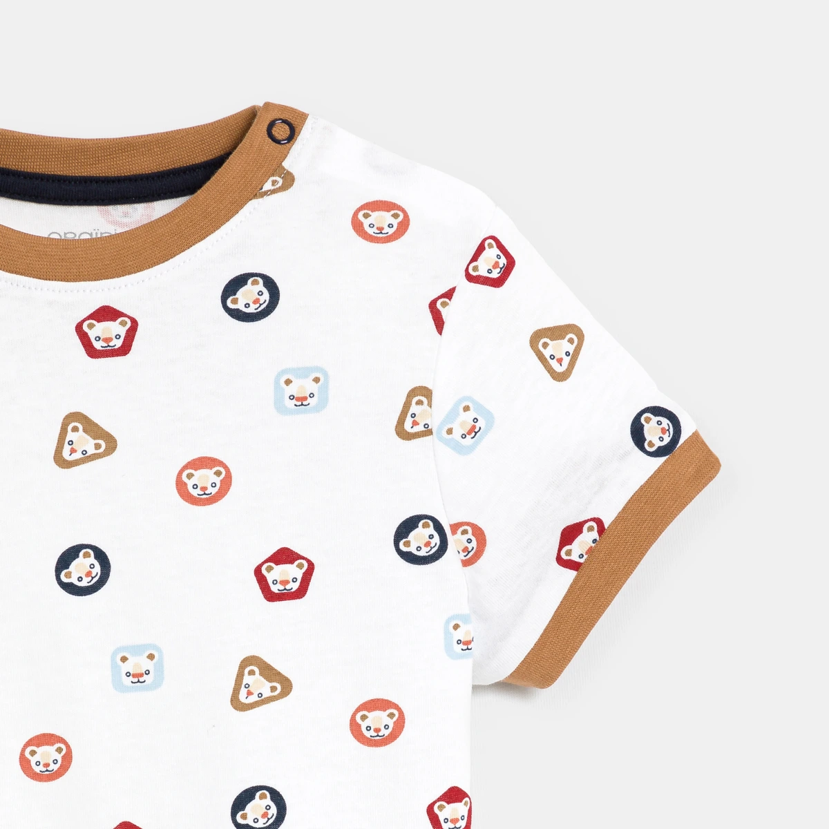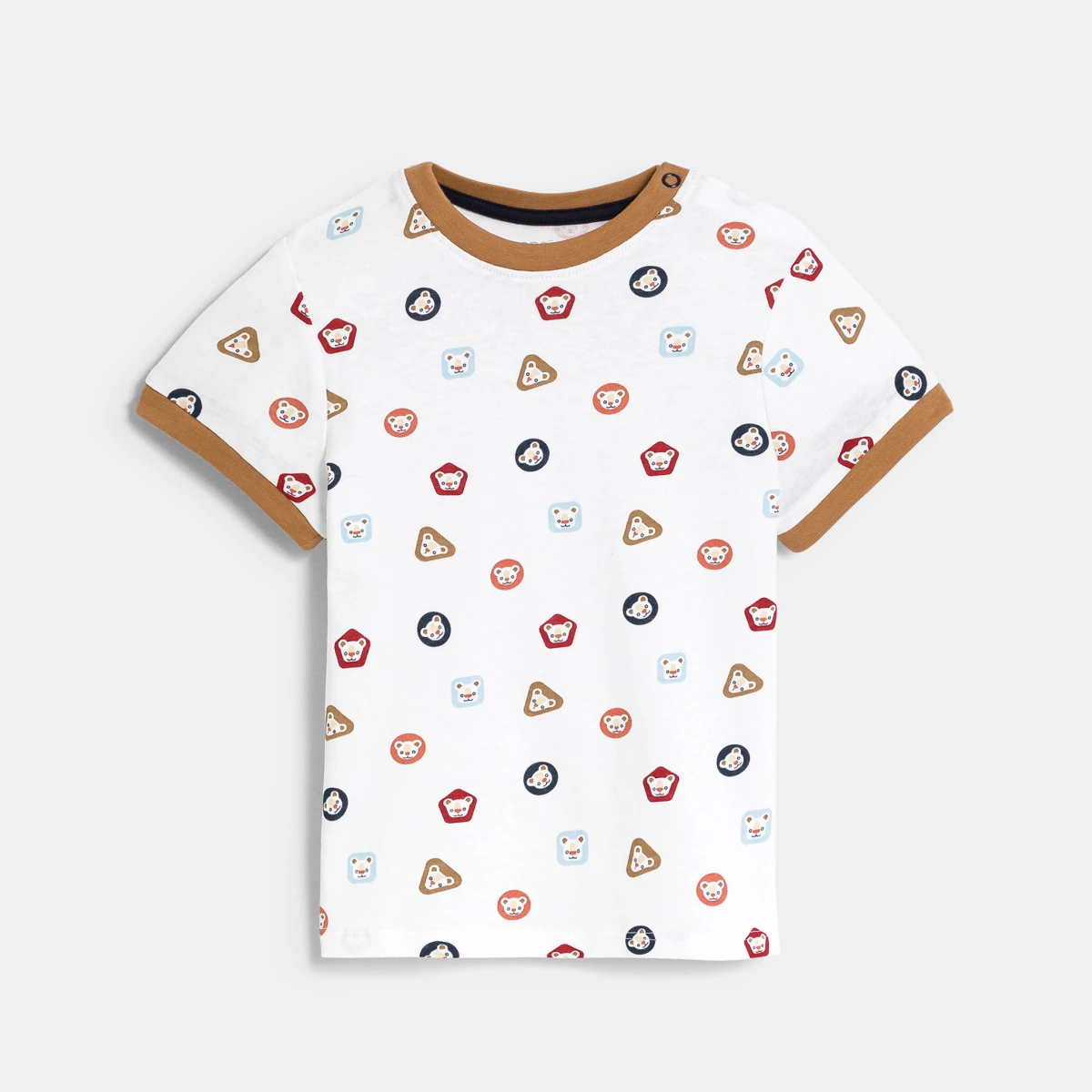 يعجب الأولاد كثيرًا باللمسة المرحة على هذا التيشيرت! طبعة مرحة تجمع بين وجوه الحيوانات والأشكال الهندسية لإضفاء لمسة أصلية على خزانة ملابس الأولاد. أكمام قصيرة وياقة مع لمسات نهائية مضلعة متباينة. فتحة بأزرار كبس على الكتف لسهولة الارتداء.