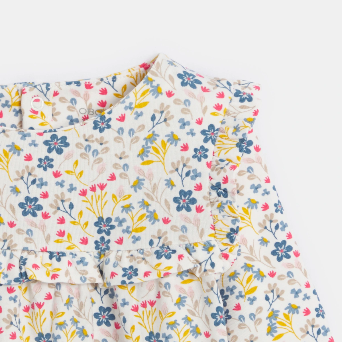 بلوزة أنيقة مكشكشة بطبعة الزهور باللون الرمادي للفتيات الصغيرات