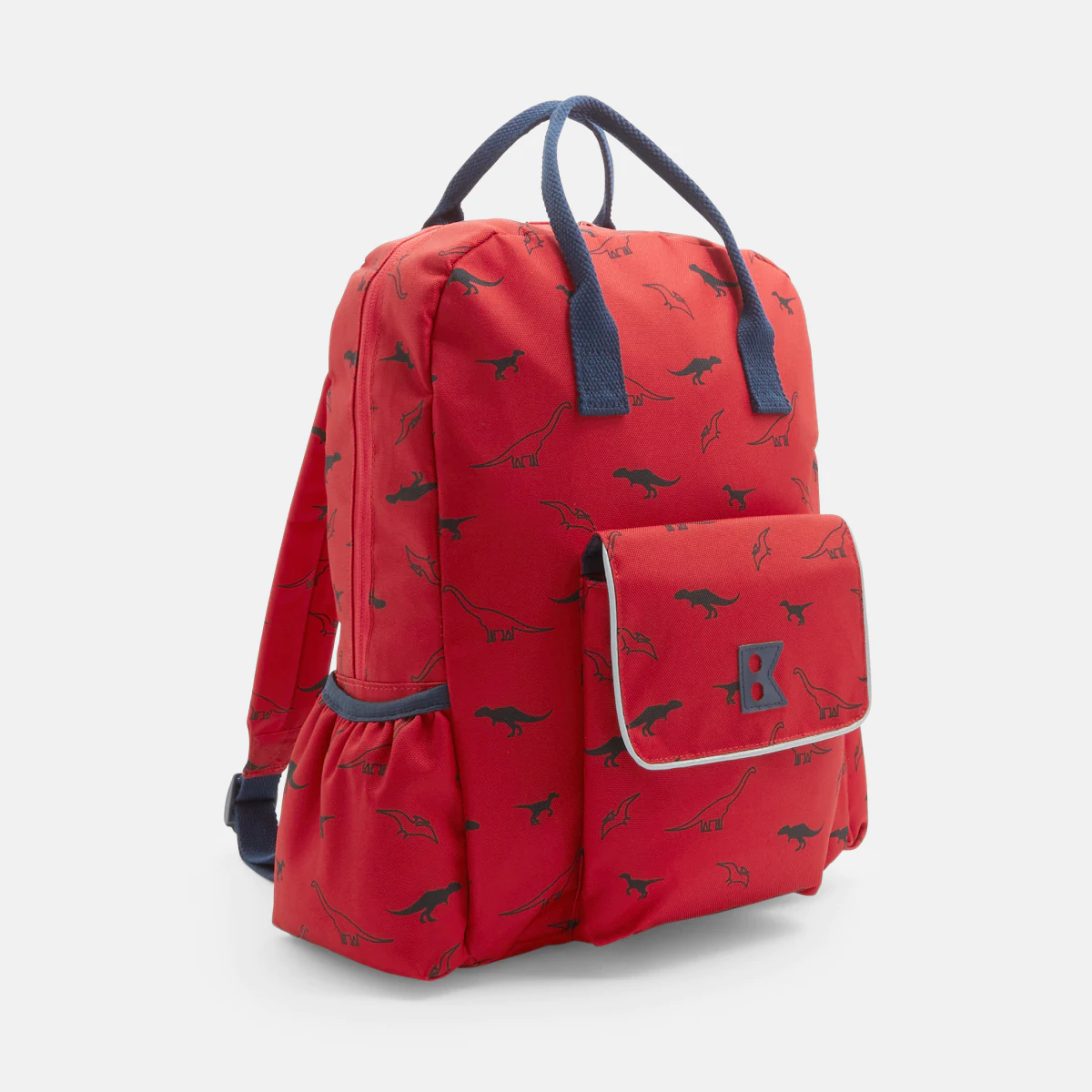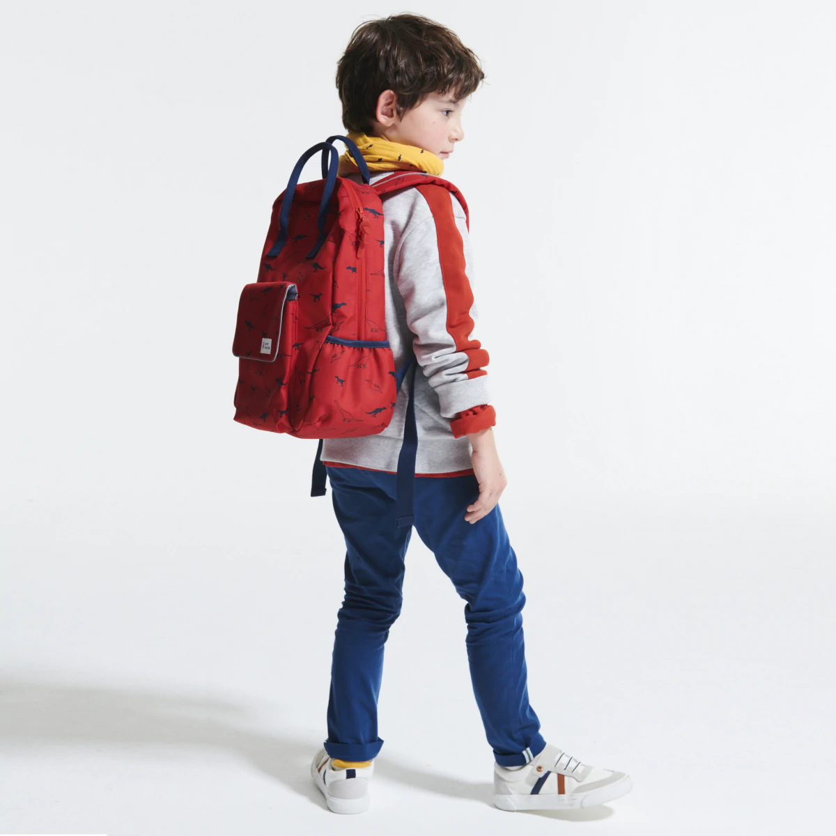 Can be held by hand or worn on the shoulder: this water-resistant printed canvas backpack is perfect for going to school or on holiday. Boys like the large zipped opening that is concealed beneath a tab the flap pocket in front and the identity label. The padded straps are adjustable and feature a reflective bias trim for more safety in the dark. The inner compartment corresponds to an A4 format for storing notebooks and binders inside. And it has a pocket on the side for holding a water bottle. Size approx. 35 x 27 x 10 cm