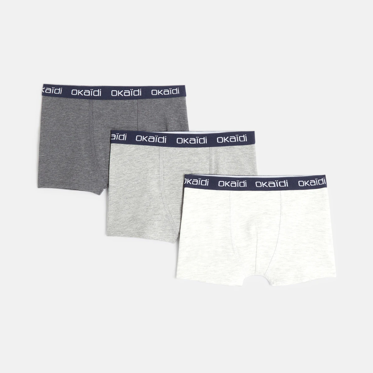 Descriptive For everyday life or sporting activities: these 3 plain boxer shorts offer comfort and simplicity. Okaïdi elasticated waist. Stitched finish. Pack of 5 boys' underwear.
